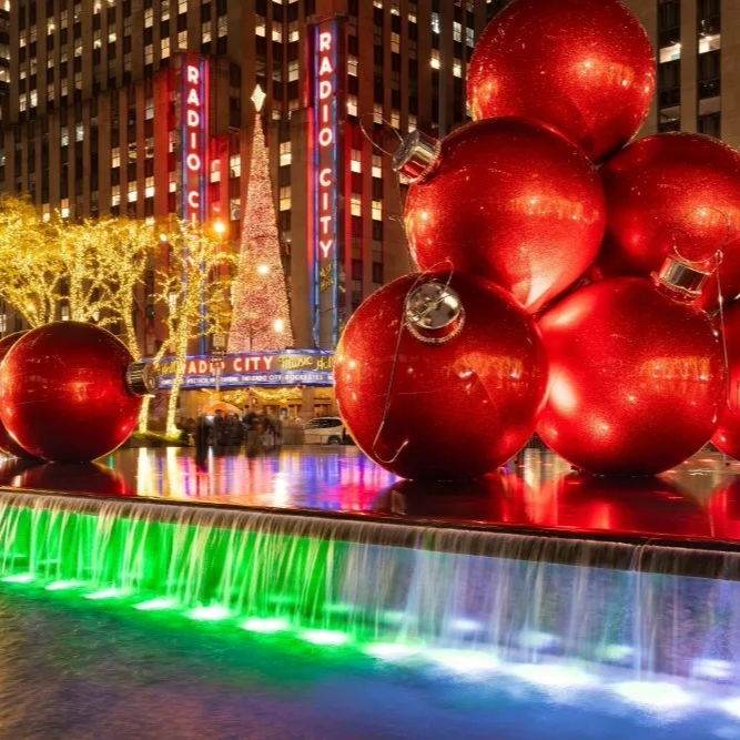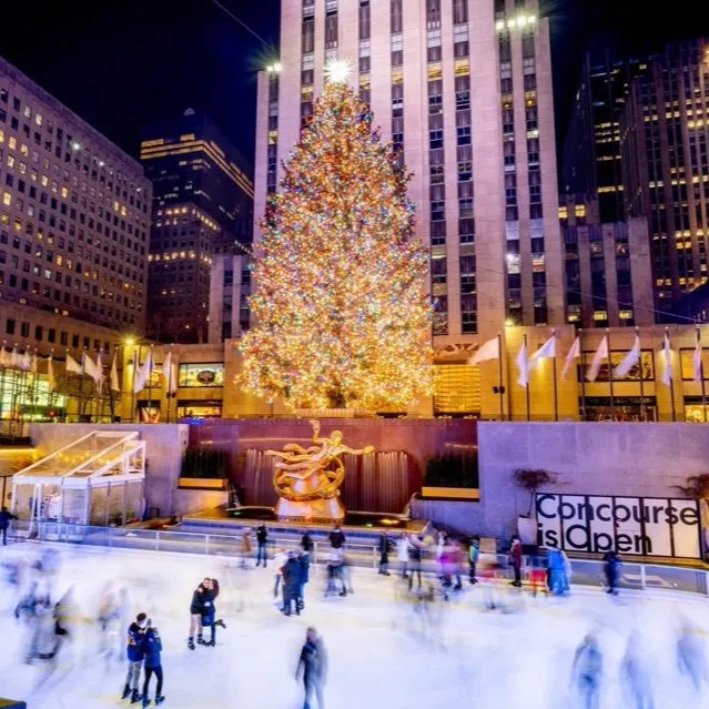 Celebrate the magic of the holidays in New York City with a festive day featuring five iconic experiences — marvel at the dazzling Christmas tree and skating rink at Rockefeller Center, admire the stunning Fifth Avenue holiday window displays, visit the majestic St. Patrick’s Cathedral, enjoy the world-famous Radio City Christmas Spectacular starring the high-kicking Rockettes, and explore the enchanting Grand Central Holiday Train Show, where model trains wind through a miniature New York winter wonderland. B,S