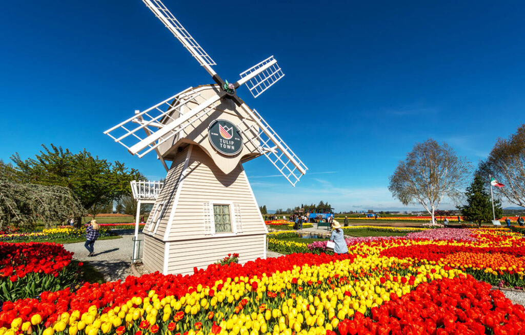 A group of locals dedicated to preserving Skagit’s Tulip growing history, purchased Tulip Town. Come with us to experience 6 acres of dazzling color brimming with 100+ varieties of tulips! Make memories to last a lifetime as you explore the Indoor/Outdoor garden displays and windmill, ride the trolley through the fields, look for treasures at the boutique and sip local wine and beer or treat yourself to desert and coffee. Before this explosion of color, join us at the annual Kiwanis Wild Salmon BBQ. With your meal enjoy coleslaw, baked potato, garlic bread and ice cream. Following our Tulip Stroll, stop at Shuh Farms with 5-acre homestead, 100+ year old home, barn, and hen house making wonderful photos. Inside the farm store, you’ll find delicious fresh bake pies, scones and cookies,. Seasonal offerings, including jams, honey, pickles, early spring produce and even bedding plants! Plus local cheese, fresh eggs and other treats. .